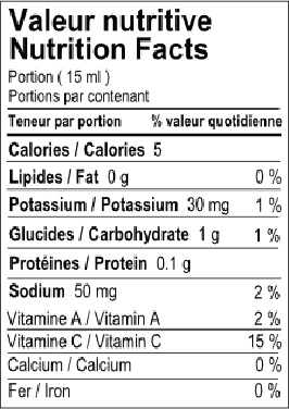 Piments forts, Oignons, Eau de source, Jus de citron fraichement pressé, Jus de lime fraichement pressé, Fines herbes fraiches, Gingembre frais, Vinaigre de cidre, Épices.